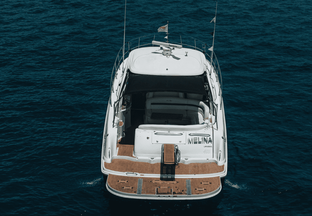 Bimini, Outdoor shower, External table, External speakers, Aft sundeck, Bathing Platform, Bathing ladder